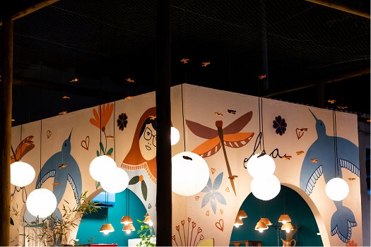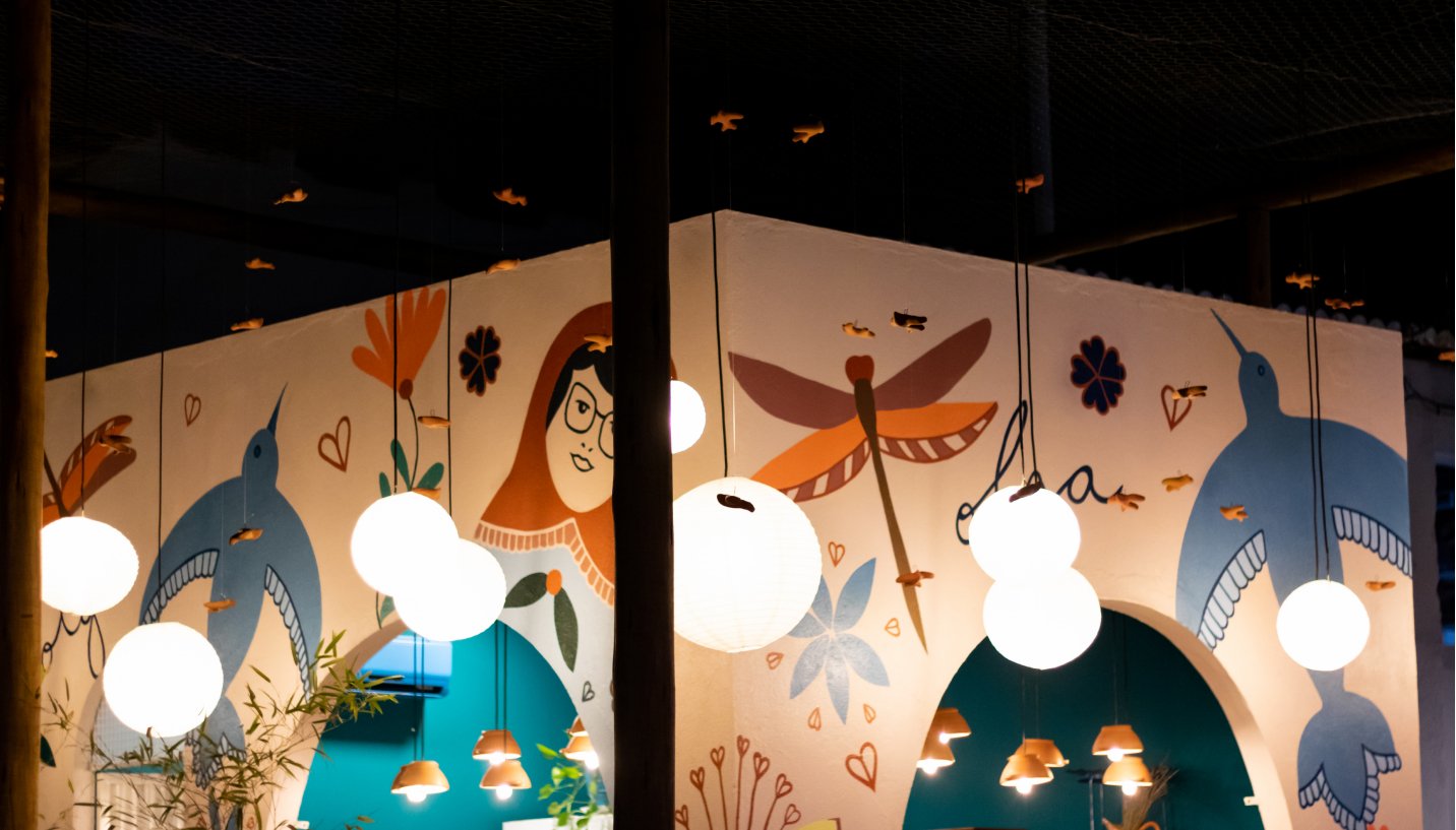 O espaço foi pensado para ser acolhedor, funcional e ao mesmo tempo expressivo, traduzindo a essência das Netas de Olga em cada detalhe arquitetônico.