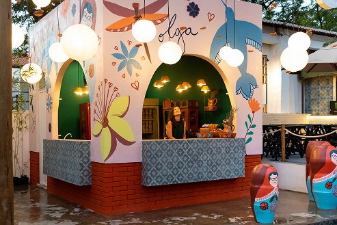 O projeto Filhas de Olga foi desenvolvido para a Expocrato, em um quiosque de vendas que precisava transmitir de forma clara e envolvente a personalidade das empreendedoras à frente da marca.