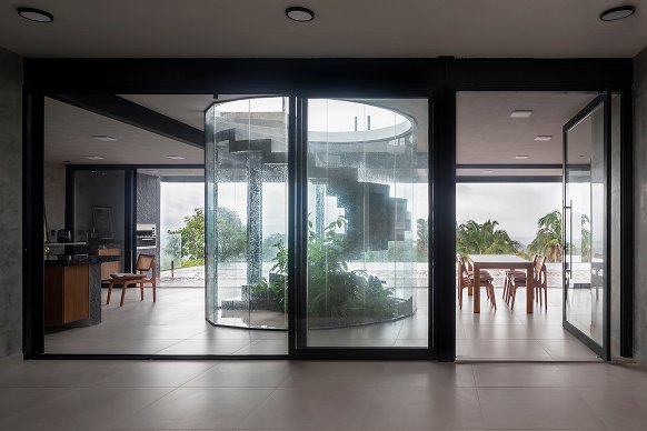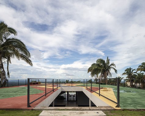 Uma das principais premissas ligadas à implantação, além das citadas anteriormente, foi a manutenção da vista da cidade no horizonte, que se comporta de duas formas, através de uma grande praça mirante na cobertura da casa, esta, no nível da calçada; quem chega tem visão livre, o olhar tem palco para contemplação da chapada. A outra forma é pelo enquadramento da vista, do interior da casa.