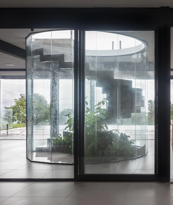 Quanto à materialidade, se fez presente numa vertente industrial, blocos de concreto nas vedações e perfis metálicos com lajes em concreto na estrutura. O uso foi adotado de forma inteiramente racional, dando lugar aos panos de vidro como meios de integração natural.